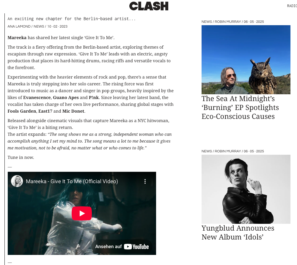 With her first single, "By Your Side" in 2014 and her subsequent singles "Voices" (2022) and "Give it to me" (2023), she delivered as a rock star.